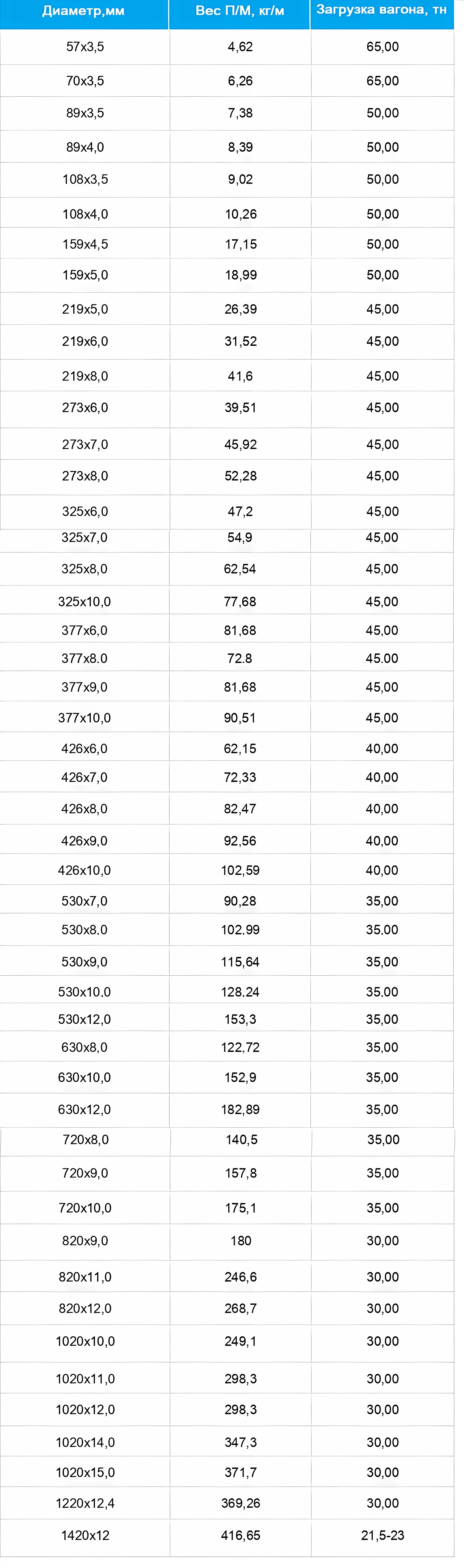 Нормы загрузки труб в вагон